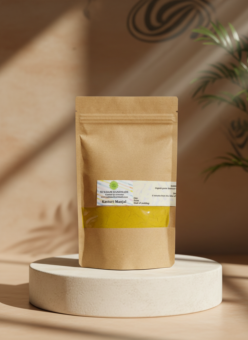 Kasthuri manjal is not culinary turmeric. It is a skin-specific botanical traditionally used for bathing and skincare rituals. This powder is finely ground to blend easily with water, milk, or rose water. Known for supporting clearer-looking skin and reducing dullness over time, it fits seamlessly into daily or weekly routines. The aroma is earthy, the feel grounding, and the results gradual but consistent.